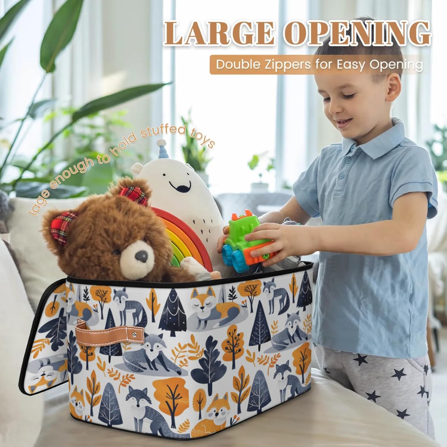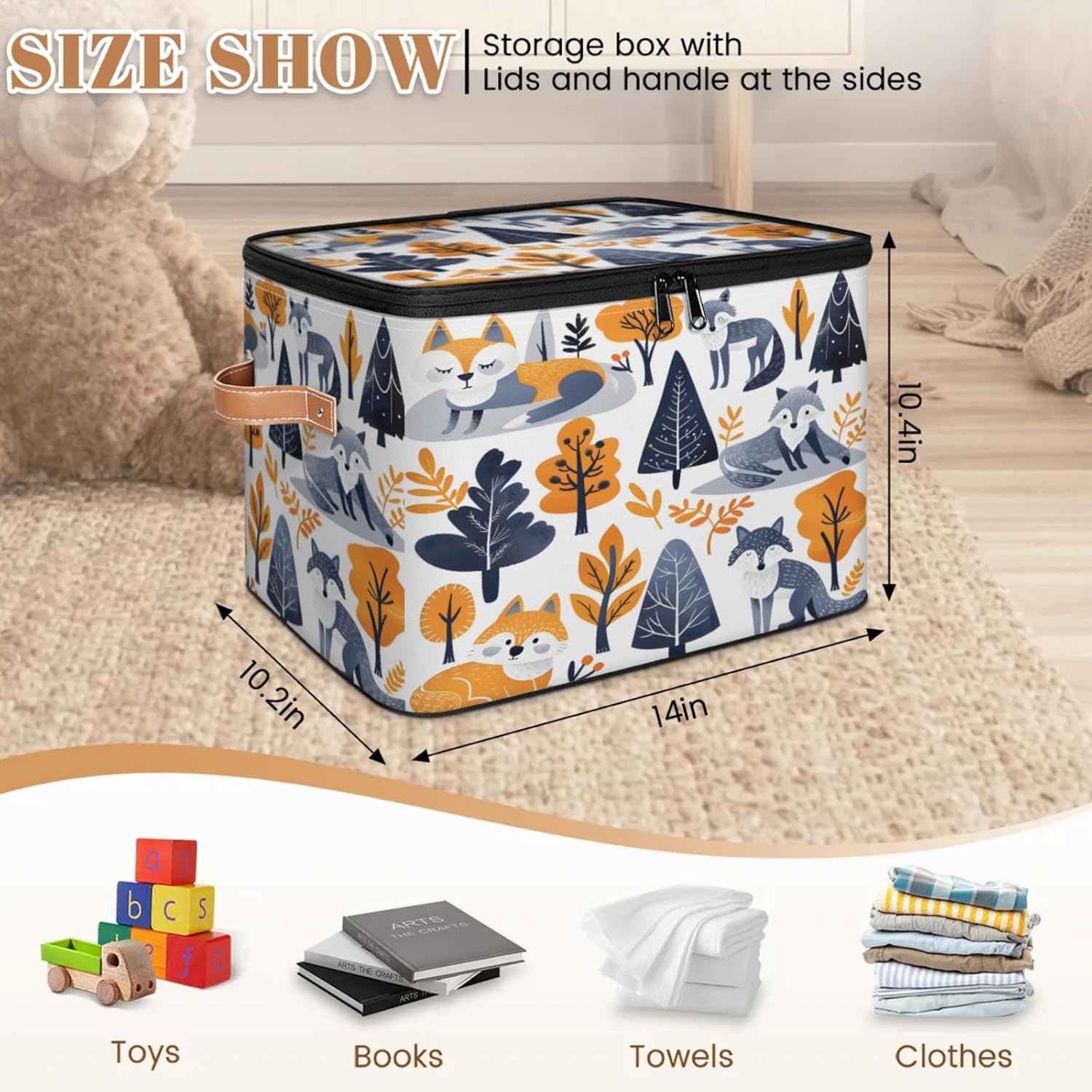 Stay Organized with Our Premium Fabric Storage Bin! Keep your home, closet, or office clutter-free with our large fabric storage bin with a double-zippered lid. Made from high-density 100% polyester (2mm thick), this storage box is both lightweight and durable, ensuring long-term use without wear and tear. The reinforced leather handles make it easy to carry, while the built-in wire frame keeps its shape whether full or empty. Why Choose Our Storage Bin? ✔ Space-Saving Foldable Design – Collapses flat when not in use, perfect for small spaces. ✔ Easy-Access Double Zipper Lid – Quickly store and retrieve items without hassle. ✔ Multi-Purpose Organizer – Ideal for clothes, toys, blankets, toiletries, pet supplies, and more. ✔ Perfect for Any Room – Fits seamlessly in kitchens, bathrooms, nurseries, dorms, RVs, and cars. ✔ Simple Maintenance – Hand wash or spot clean for easy care.
