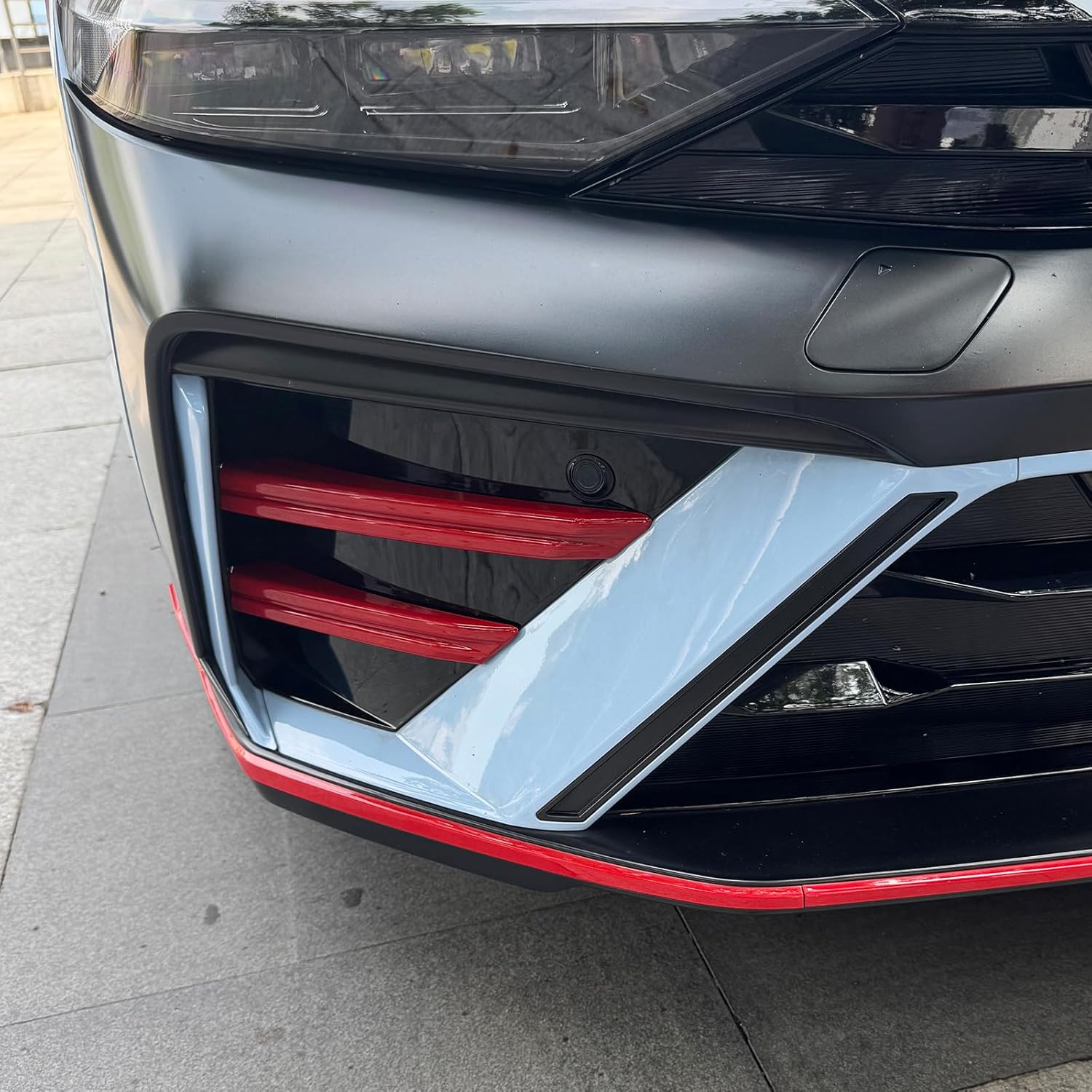 Description This listing is for 8 pieces of carbon fiber style/ Glossy Red Style Front Bumper Side decoration cover trim for Hyundai Elantra 2024.Fitment:Compatible with Hyundai Elantra N 2024-2025, Elantra N-Line 2024-2025Description:Condition: 100% brand new, shown as pictured8 pieces/set Car Left & Right Front Bumper Side coverMaterial: ABS PlasticCome with double side tape at the back for simply to applyEasy installation, peel and stick, no any hole neededInstallation:Make sure the target surface is clean and dry before applyingPeel off the back adhesive, slowly and firmly stick on the target areaNo washing or watering within 48 hours