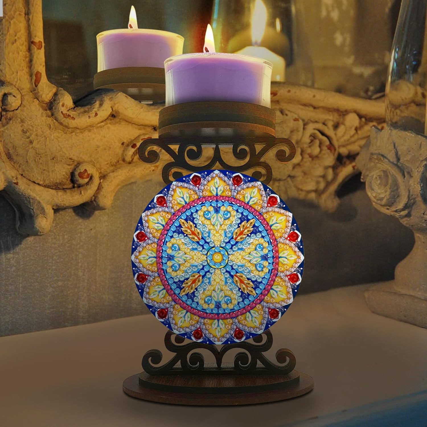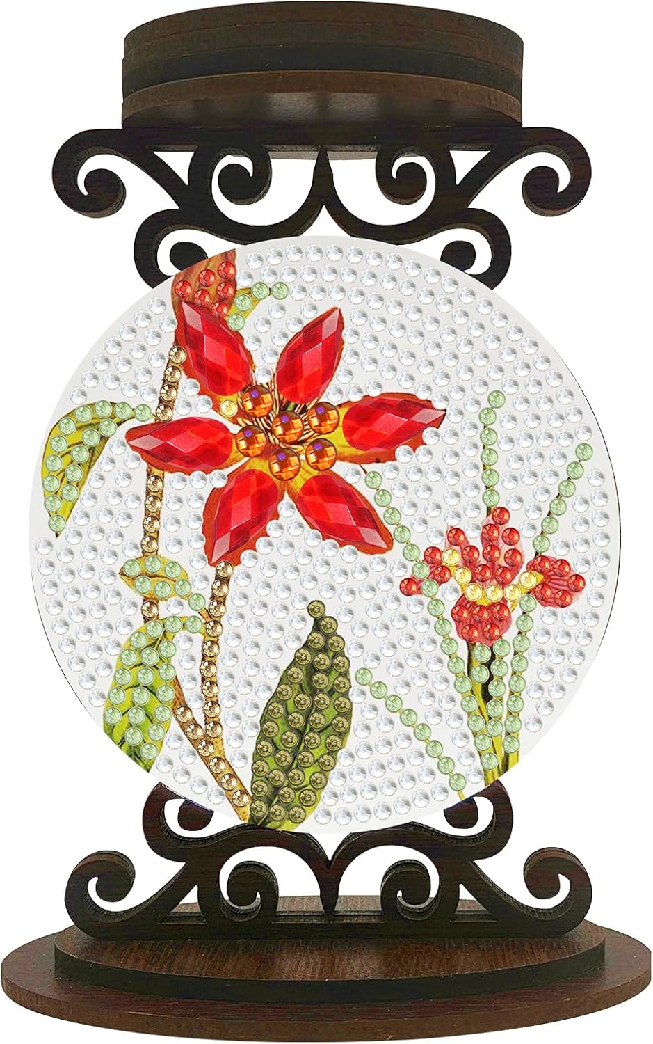 Product name: DIY dot-drill candlestick ornaments (double-sided dot-drill)Drill type: special-shaped/bright diamondProduct size: as shown in the pictureProduct material: poplar woodProduct packaging: color box packagingPackaging size: about 16.5X11.5X2cmProduct includes: 1X candlestick ornament (need to do the dot-drilling and assembly by yourself), 1X drill bag, 1X dot-drill tool kitProduct features:1. Improve ability: It can enhance people's hands-on ability and color matching ability, and cultivate concentration and happy self-discipline. Enjoy the fun of the DIY process and create beautiful paintings.2. Easy to learn: Suitable for people of all ages, suitable for diamond art painting beginners and enthusiasts.3. Home decoration: Diamond art painting creative pattern design, multi-faceted cutting, gorgeous and eye-catching, can be used in study rooms, dressing tables, bedrooms, bathrooms, living rooms and other places to achieve practical and decorative effects.DIY diamond art painting production steps:1. Open the package and check whether the tools for diamond art painting are complete;2. According to the resin diamond color code, choose a color on the plate. If you paste the same color at one time, you can increase the speed;3. Find the corresponding color code on the canvas and start pasting until it is completed;4. After it is completed, in order to make the diamond art painting stable, you can take some books and press them on the canvas for a while;5. Finally it is done.Note:This is a DIY diamond art painting, not finished, you need to complete it yourself. All products are measured manually, please allow 1-2 cm deviation