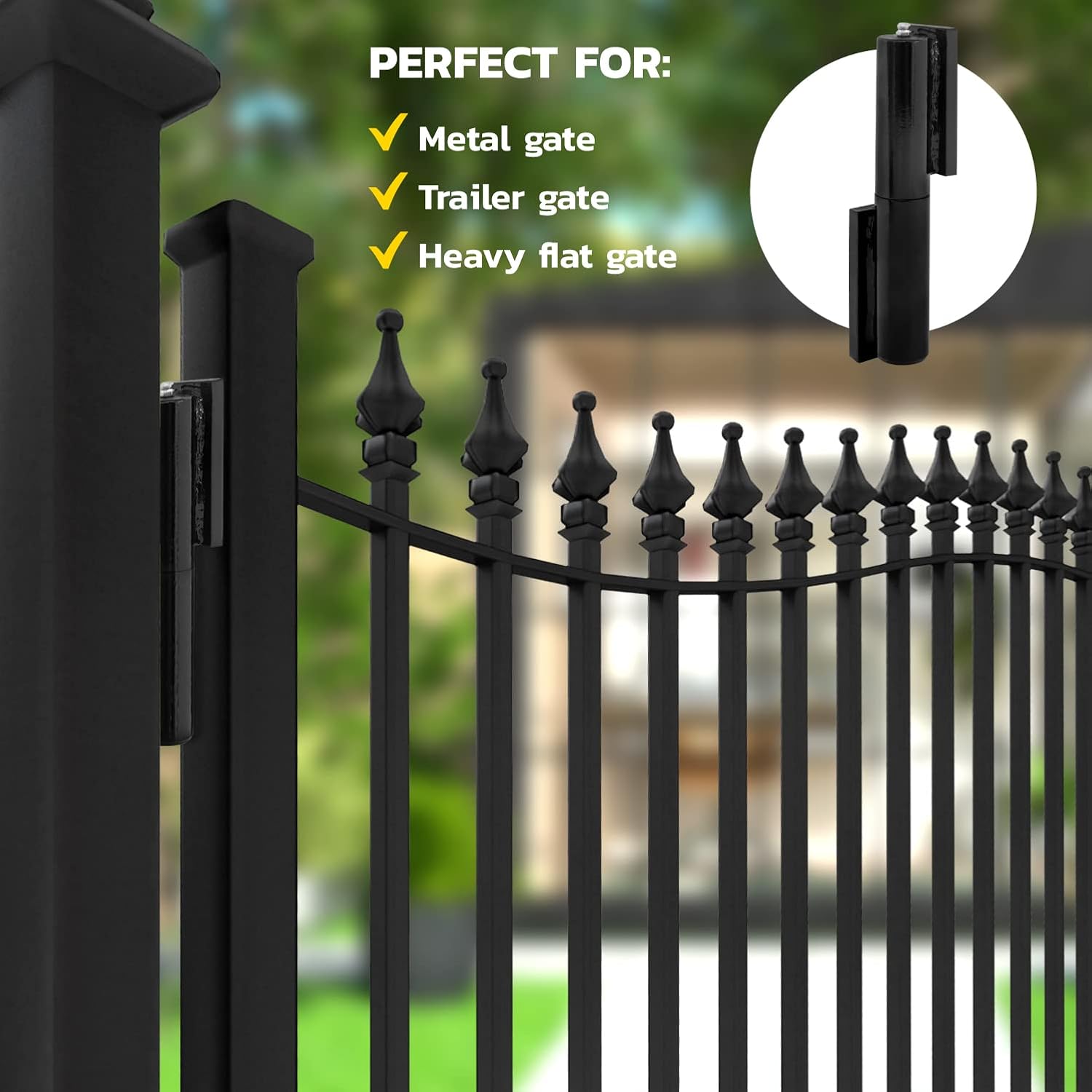 INSTALLATION TIPS Place the location of the hinge on the door Remove the paint covering the hinges before welding You will see a steel ball bearing and that is what the pinned side of the hinge rides on. There is a nipple that is for applying grease to keep things smooth. Weld on hinges. Pre-painted to keep these hinges from rusting and in place for long time