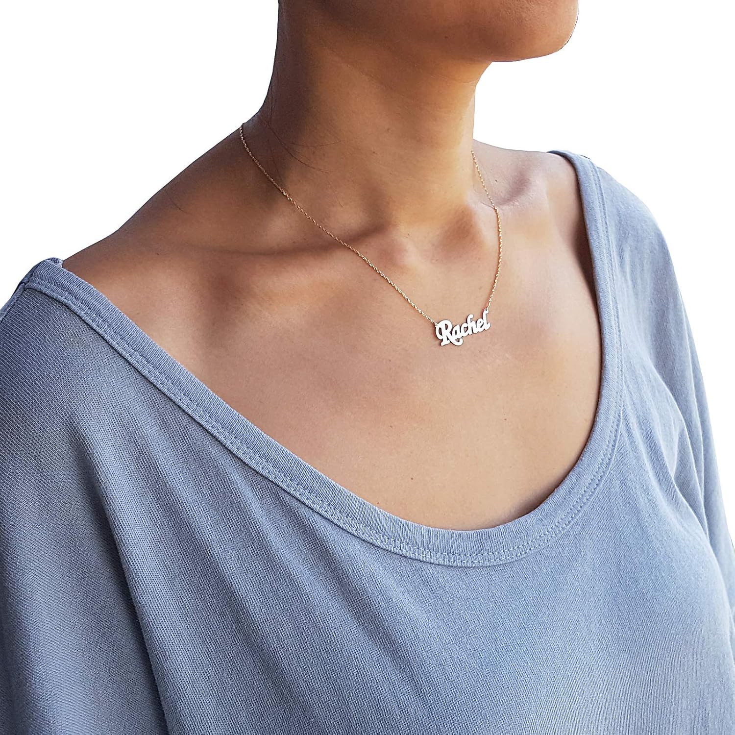 Premium high end quality solid 10k yellow gold small name necklace. Nameplate measurement - Height: 3/8 Inch (10 mm) Approx. Width: 1 1/4 inch (32 mm) Approx. Nameplate and the chain thickness options (Standard: 0.45 mm - 1.0 mm Singapore chain - Upgrade: 0.9 mm - 1.5 mm Singapore chain). Chain length comes from 14 inches to 20 inches, the nameplate length not included on chain length option, total 17 inches when you select 16 inches chain option.