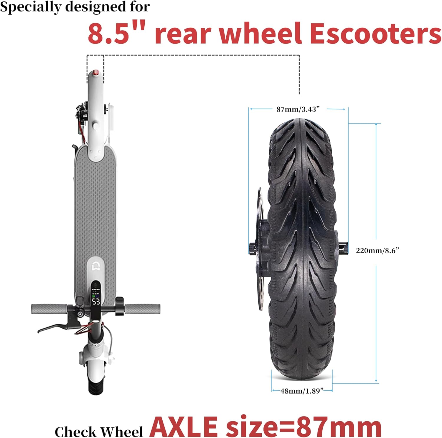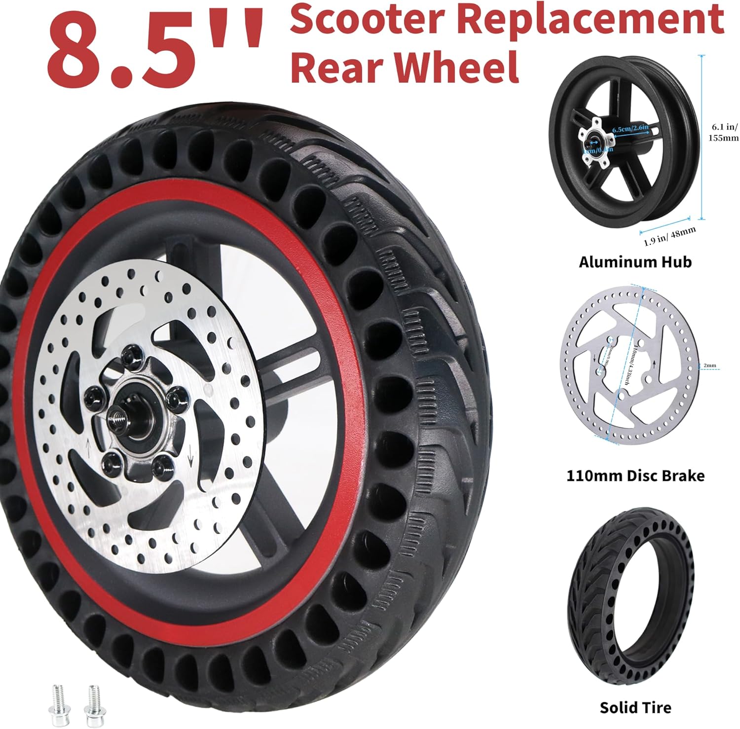 | Compatible with Vehicle Type | Electric Scooter 8.5" Wheel with 110mm Disc Brake |