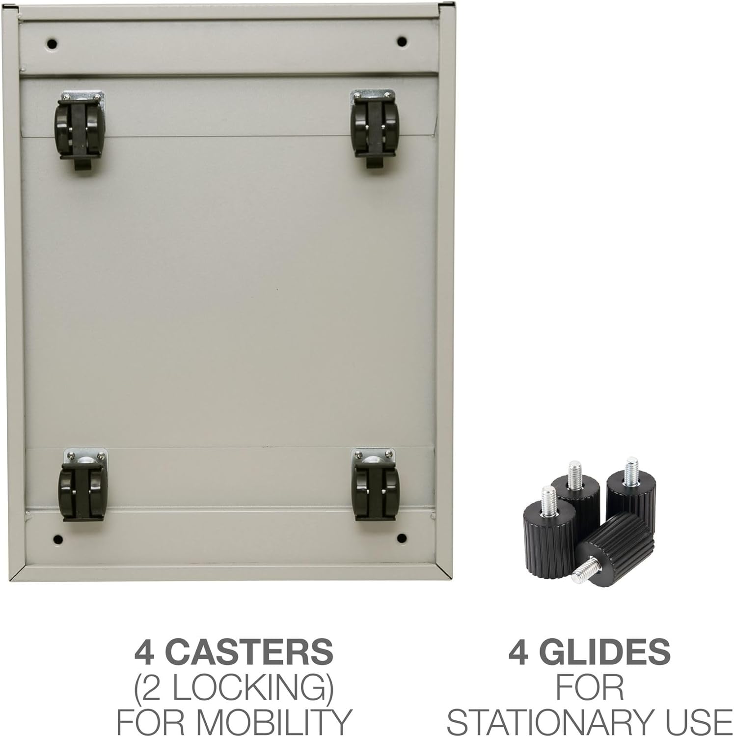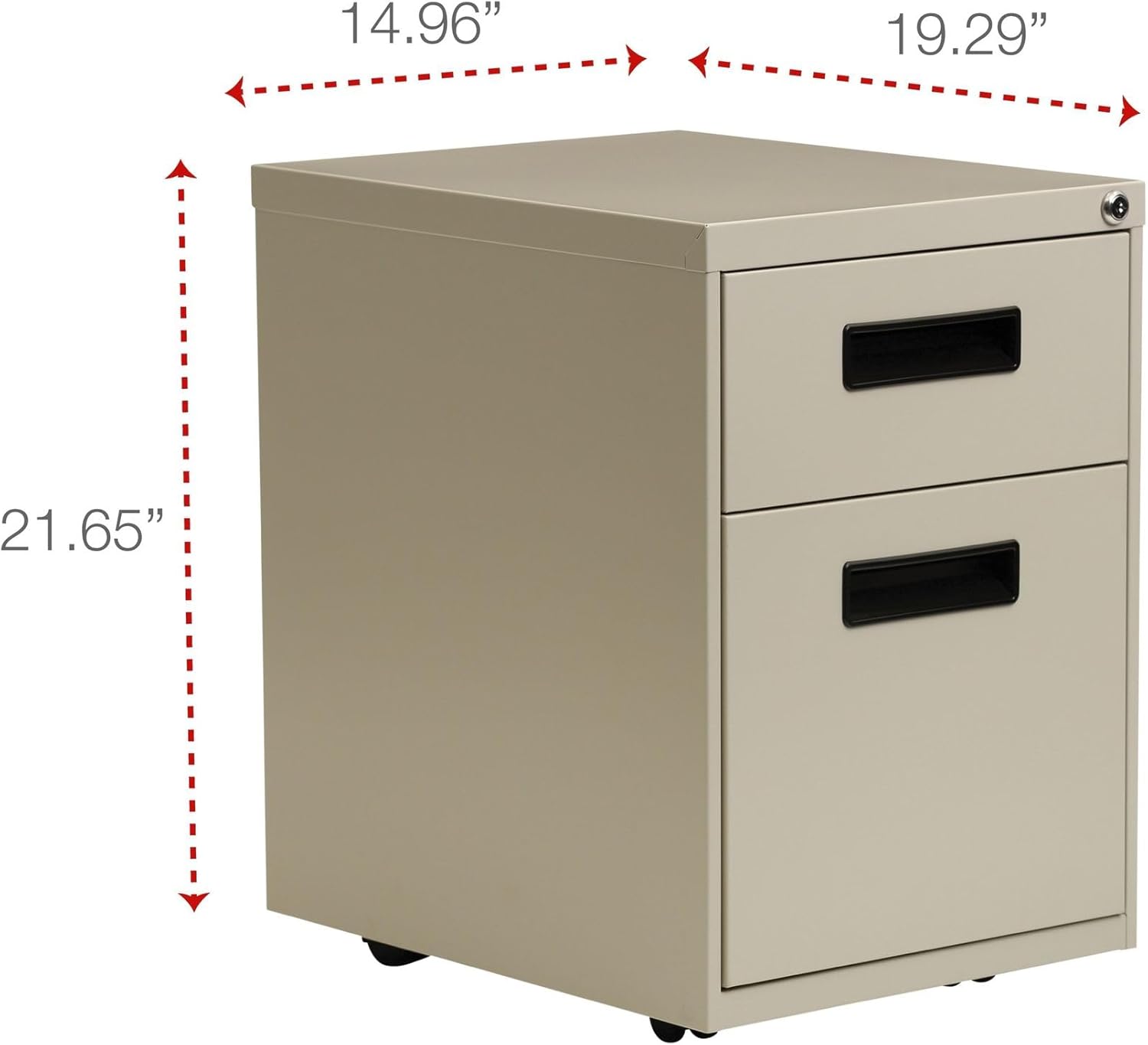 Get organized with a high-sided file cabinet with drawers that accommodate letter or legal-size filing. The counterweight prevents tipping. Visible, easy-access casters, two locking, two non-locking. Steel ball bearing slide suspension helps drawers glide smoothly and with ease. Built with 3/4 extension on box drawers and full-length extension on file drawers for maximum accessibility. Full-length pull permits easy opening. Box drawers include one divider and pencil tray.