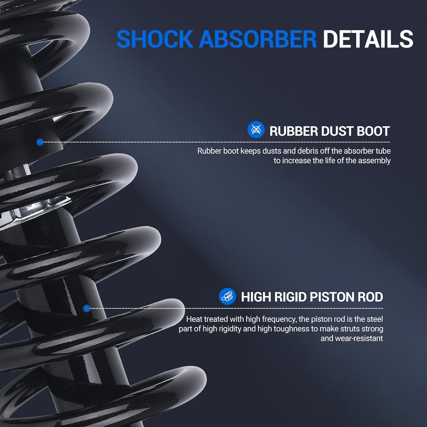 • QUALITY & UPGRADE - Autoround's Complete Strut and Coil Spring Assembly manufactured to OE specifications and ISO quality standards under the guidance of a professional OEM manufacturer, has upgraded corrosion protection that has more longer service life than the original strut shock absorbers. The high-strength steel body makes it more stable during operation. All products are factory-tested for Reliability, Durability, and Performance