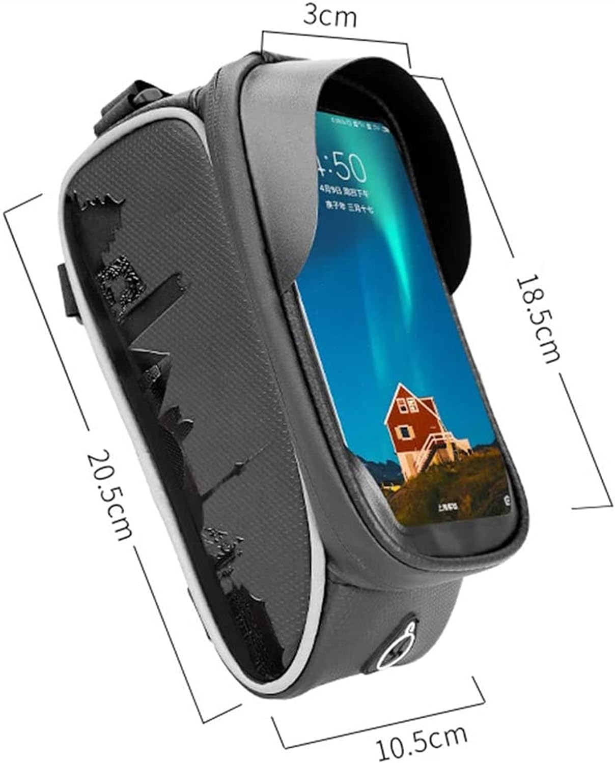 Bike Handlebar Bag Waterproof Bicycle Cycling Phone Mount Pack with Touch Screen for Phones 6 inchDescription:Material: PU and TPUColour: BlackSize: about 20.5*10.5cmScreen size: 6.0 inchesFeatures: Reflective design with edging on both sidesPackage included:1* Bike Phone Front Frame Bag