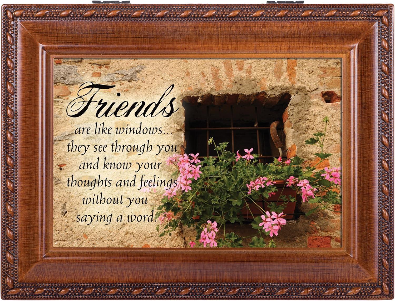 This beautifully trimmed Music Box / Jewelry Box makes the perfect gift. The Sankyo brand musical movement is enclosed in glass for an added touch of luxury. Use the photo opening to add your own special touch of personalization.