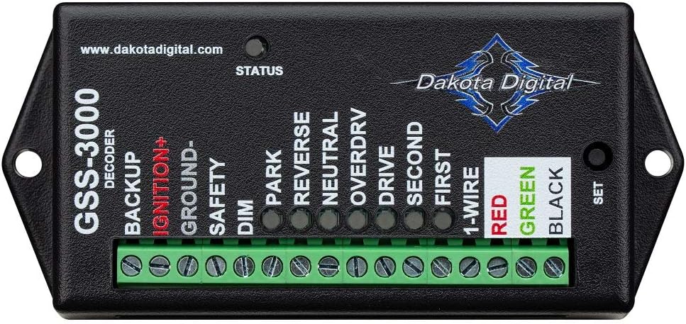 The GSS-3000 is a new generation of gear-shift (detent) position system from Dakota Digital. We’ve minimized the decoder (the brain of the system), and the new, smaller size with inboard terminals allows for easier installation. Able to be used with a Dakota Digital instrument system or on its own, this versatile unit can relay transmission gear position to a VFD, VHX, HDX or RTX instrument system, as well as the DGS-series of standalone indicators. Includes: Mounting hardware included to fit automatic transmissions including GM TH350, TH400, 700R4, 4L60/70/80, as well as Ford C-4 and C-6. Other transmissions will utilize the included universal mounting bracket. GSS-3000 supersedes the GSS-1000 and GSS-2000