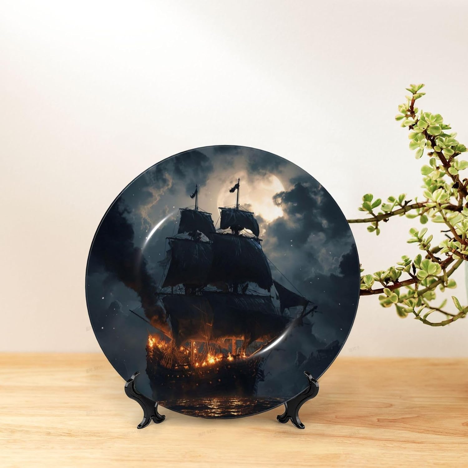 PORCELAIN PLATE DECORATION: Pirate sailboat full moon Crafts decorative plate painting decorative plates are worth sharing with your friends and family, showing your personality. Start with these fun and ceramic ornaments salad plates, refresh your roomsDIVERSITY OF USE: Porcelain dessert plates has a variety of placement methods, whether it is placed on the table with a base or hung on the wall, ceramic decorative plate is a very beautiful decoration. Dishes with display stand sturdy, versatile, and stylish, and everyone can use it safely, it is both beautiful and easy to cleanNO RISK: Crafts Decorative Plate is sturdy, versatile, and stylish, and everyone can use it safely. We will provides premium service to help solve any problem.Please feel free to contact us if you have any quality or transportation problems.