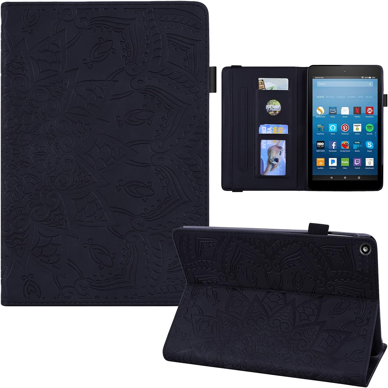 Specifically designed for Amazon Kindle Fire HD 8 tablet (8th/7th/6th Generation, 2018/2017/2016 Release), NOT compatible with other model. 1.Magnetic Closure: Flexible, secure and convenient enough to hold it open or shut,Easy to insert and remove, which will bring more convenient in daily life. 2.Interior card slots are designed for carrying your credit card / business cards/ some notes or bills while on the go. 3.Precise cut-outs and openings for easy access to all tablet features.Full access to all tablet features (Cameras, Speaker, Ports and Buttons). 4.Anti-slip stripes provide stable and multiple viewing angles for your tablet, prevent your tablet from falling down when reading or typing. 5.Made of synthetic leather and shockproof flexible soft TPU, snug fit, full body protect your tablet from scratches, dirt and grime. Package Content: 1 x Amazon Kindle Fire HD 8 tablet 2018/2017/2016 Release Tablet Case. PLEASE NOTE: Colors shown in pictures may slightly differ from actual product due to lighting and color settings. If you want more Leather Wallet Cover, We also have other models available, please search our store.