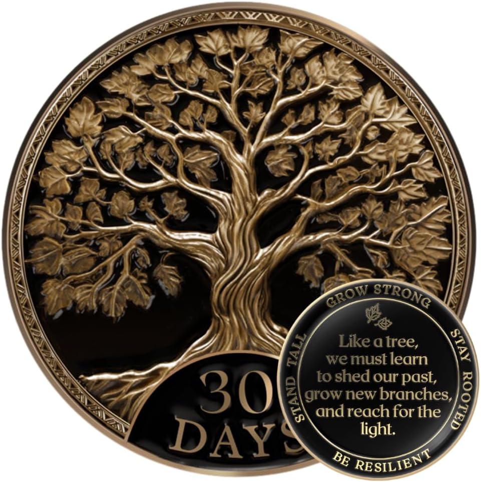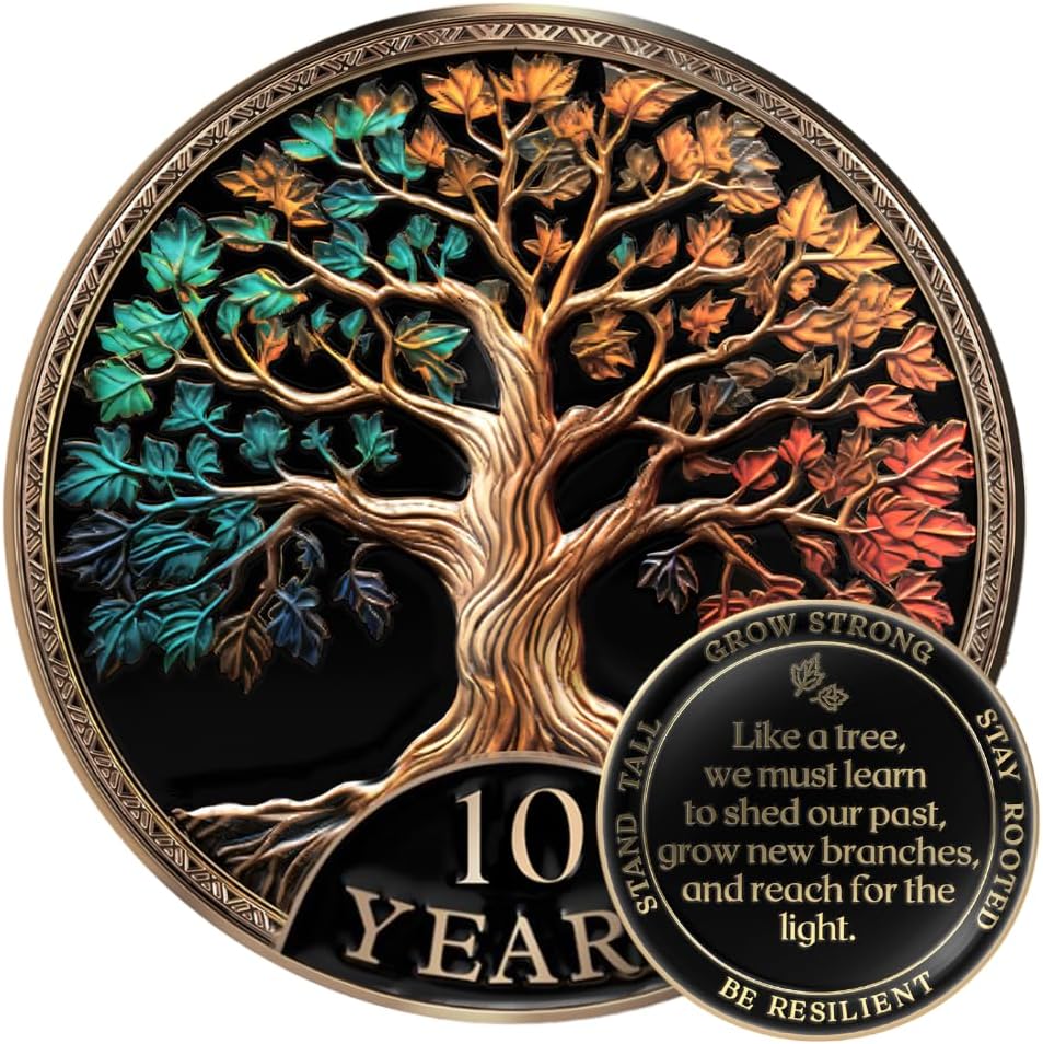 Honor every milestone with the MilestoneMint 10 Pack Tree of Life AA Medallion - a beautifully crafted, meaningful token that celebrates growth, renewal, and the courage to reach for the light. This premium sobriety chip features powerful symbolism and thoughtful design, making it the perfect gift for anyone marking their recovery journey. Inspiring Tree of Life Design Our original Tree of Life design symbolizes shedding the past, embracing growth, and reaching toward the light. The deep roots represent your foundation and strength, while the flourishing branches symbolize new beginnings and continuous transformation. Premium 3D Textured Craftsmanship Unlike standard AA coins, our sobriety chip features a raised, textured 3D engraved design that offers rich sensory satisfaction. The polished finish and intricate depth add meaning to every touch - you can truly feel the tactile reminder of your recovery journey. Perfect Fit & Substantial Feel Thoughtfully designed with premium specifications: Dimensions: 34mm diameter, 3mm thick Substantial weight and feel that sets it apart from standard AA coins Versatile size: Fits perfectly in AA book covers, key tags, pockets, wallets, medallion cases, or display stands Durable construction built to last for years of daily carry This medallion is ideal for all celebrations and makes a valuable addition to AA gift collections. Inclusive & Non-Religious Designed to be universally supportive, this recovery coin is perfect for anyone on a journey of healing – not limited to Alcoholics Anonymous. The Tree of Life is a timeless, cross-cultural symbol of growth and renewal that resonates with people of all backgrounds and belief systems.
