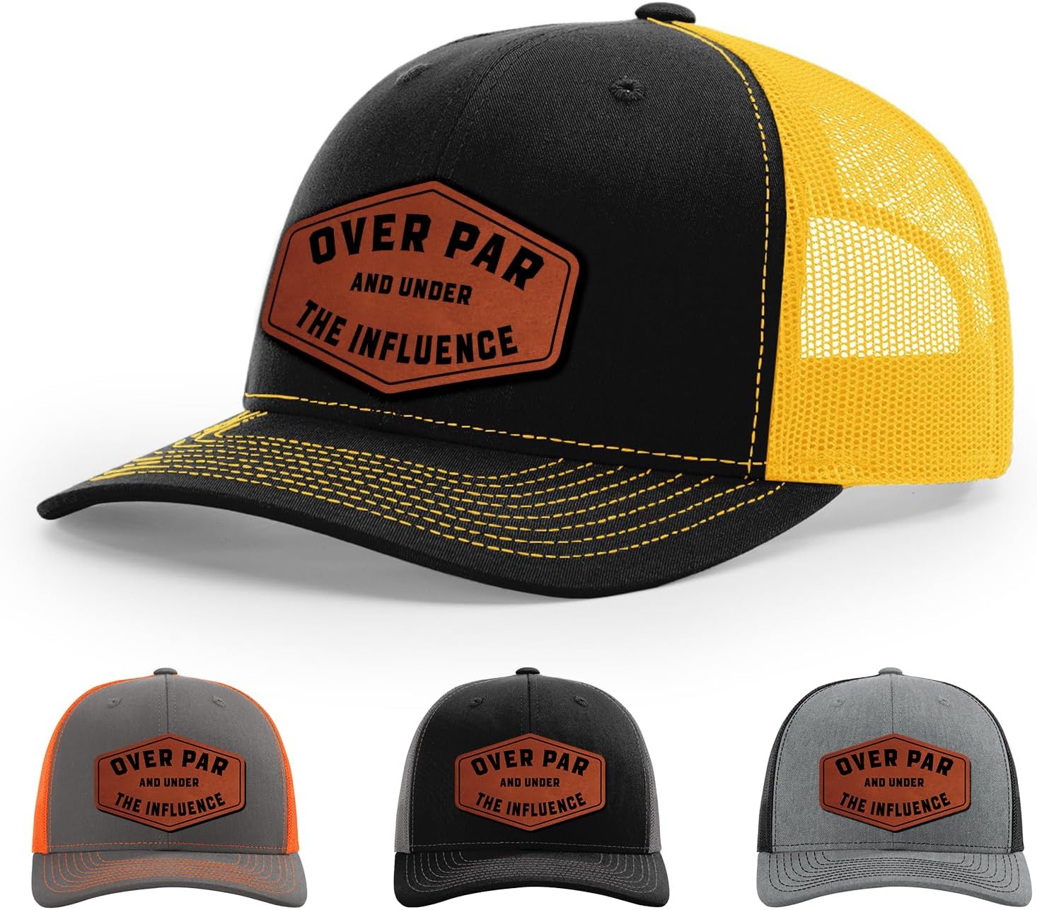 Looking for a stylish and comfortable accessory that's perfect for any casual occasion? Look no further than the Over Par And Under The Influence, Golf Hat! The contrasting more than 100+ hat color options add a modern flair, while the rawhide leather patch, precision laser-engraved, conveys the feelings shared by many. The 112 Style snapback style ensures a comfortable and secure fit for all head sizes, with a timeless design that combines quality and style. Embrace the message of hard work and show off your dedication with this must-have addition to any hat collection. So why wait? Add the Over Par And Under The Influence, Golf Hat to your accessory collection today and show off your unique personality and style!