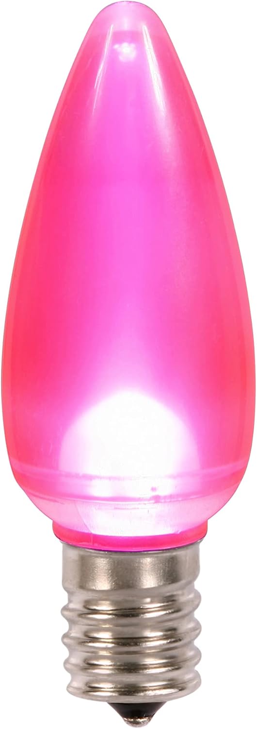Vickerman C9 Ceramic LED Purple Replacement Bulb. Features: E17 Nickel Base, 130 Volt, .96 Watts, 5 diodes, Dimmable. Comes as a package of 25 bulbs.