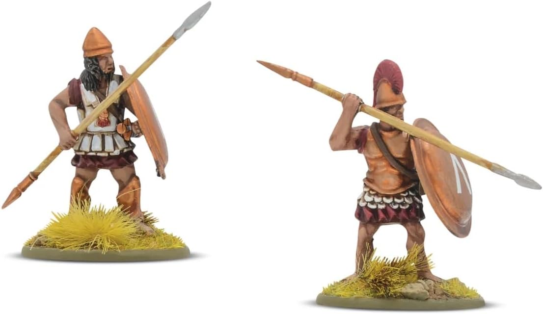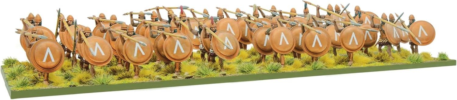 The Spartans are possibly the most famous fighting men in history, and rightly so! Spartan Hoplites were respected and feared throughout Greece, and it was long thought that no land power could stand against them. Lacedaemon, with Sparta as its capital, stood firm against the imperial ambitions of the Athenians. The Classical period saw the height of Sparta's power as well as its eventual downfall at the hands of the Thebans. This box allows you to build 40 Spartan Hoplites, wearing their distinctive Pilos helmets, long hair and characteristic beards. Also included is a sheet of waterside transfers with a selection of uniform lambda for the Hoplites' shields, and two sprues of arrows to further decorate your shields and bases.